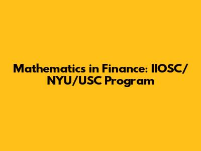 Mathematics In Finance: IIOSC/NYU/USC Program