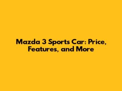 Mazda 3 Sports Car: Price, Features, And More