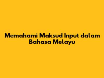 Memahami Input Dalam Bahasa Melayu: Panduan Lengkap