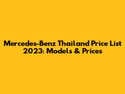 Mercedes-Benz Thailand Price List 2023: Models & Prices