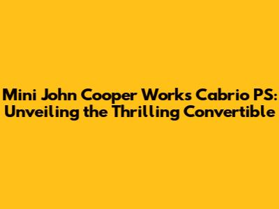 Mini JCW Cabrio PS: Specs, Performance & More!