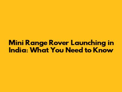 Mini Range Rover Launching In India: What You Need To Know