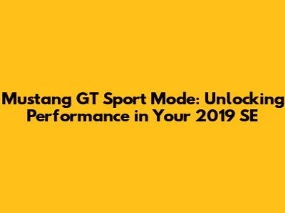 Mustang GT Sport Mode: Unlocking Performance In Your 2019 SE