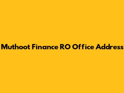 Muthoot Finance RO Office: Find Addresses & Contacts