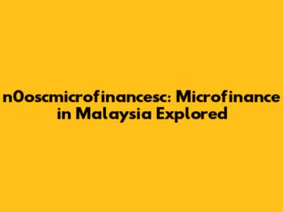 N0oscmicrofinancesc: Microfinance In Malaysia Explored