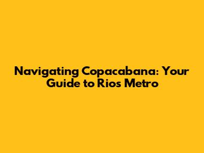 Navigating Copacabana: Your Guide To Rio's Metro