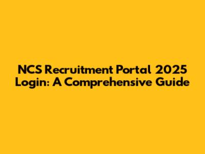 NCS Recruitment Portal 2025: Your Login Guide