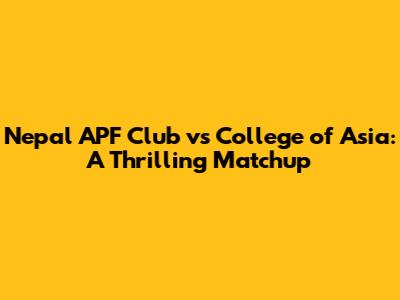 Nepal APF Club Vs College Of Asia: A Thrilling Matchup