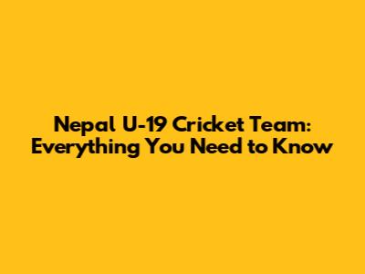 Nepal U-19 Cricket Team: Everything You Need To Know