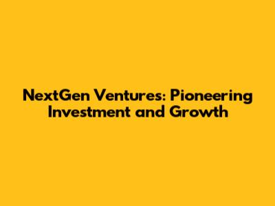 NextGen Ventures: Investing In Tomorrow's Innovations