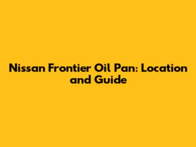 Nissan Frontier Oil Pan: Location And Guide