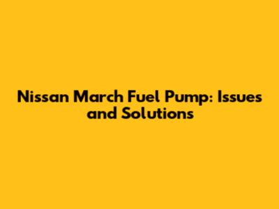 Nissan March Fuel Pump: Issues And Solutions