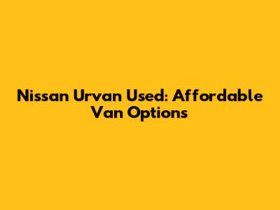 Nissan Urvan Used: Affordable Van Options