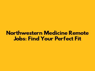 Northwestern Medicine Remote Jobs: Find Your Perfect Fit