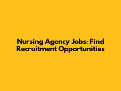 Nursing Agency Jobs: Find Recruitment Opportunities