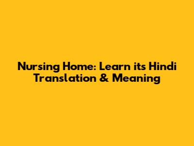 Nursing Home: Learn Its Hindi Translation & Meaning