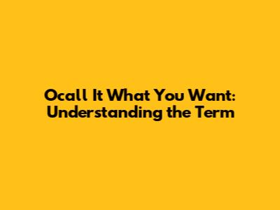 Ocall It What You Want: Understanding The Term