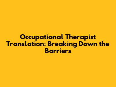 Occupational Therapist Translation: Breaking Down The Barriers