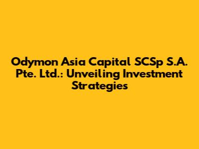 Let's dive deep into Odymon Asia Capital SCSp S.A. Pte. Ltd., a key player in the Asian investment landscape. Understanding their strategies, focus areas, and overall impact can provide valuable insights for both seasoned investors and those just starting to explore the world of finance. This article aims to dissect the various facets of Odymon Asia Capital, offering a comprehensive overview of its operations and significance.