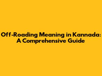 Off-Roading Meaning In Kannada: A Comprehensive Guide