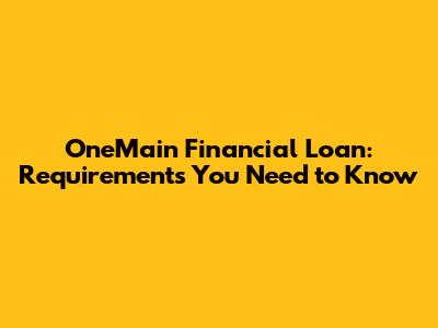 OneMain Financial Loan: Requirements You Need To Know