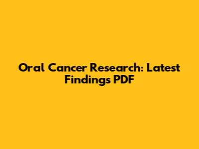 Oral Cancer Research: Latest Findings PDF