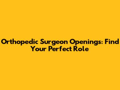 Orthopedic Surgeon Openings: Find Your Perfect Role