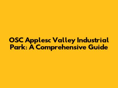 OSC Applesc Valley Industrial Park: A Comprehensive Guide