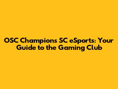OSC Champions SC ESports: Your Guide To The Gaming Club