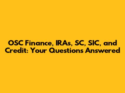 OSC Finance, IRAs, SC, SIC, And Credit: Your Questions Answered
