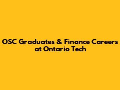 OSC Graduates & Finance Careers At Ontario Tech