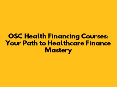 OSC Health Financing Courses: Your Path To Healthcare Finance Mastery