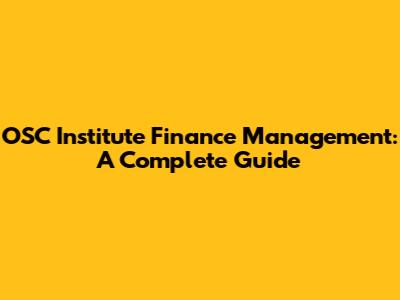OSC Institute Finance Management: A Complete Guide