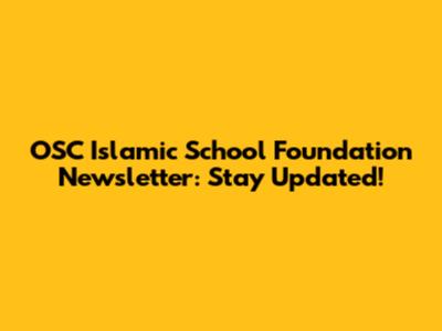 OSC Islamic School Foundation: Latest News & Updates