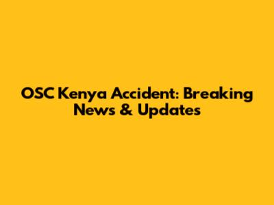 OSC Kenya Accident: Breaking News & Updates