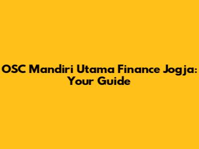 OSC Mandiri Utama Finance Jogja: Your Guide