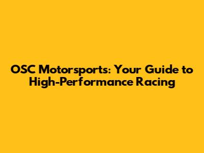 OSC Motorsports: Your Guide To High-Performance Racing