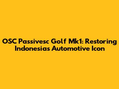 Hey car enthusiasts, are you ready to dive deep into the world of classic cars? Today, we're taking a thrilling ride through the history, restoration, and vibrant community surrounding the OSC Passivesc Golf Mk1 in Indonesia. This iconic car has captured the hearts of many, becoming a symbol of automotive passion and a testament to enduring design. So, buckle up, and let's explore everything you need to know about these vintage gems!
