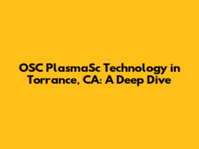 OSC PlasmaSc: Cutting-Edge Technology In Torrance, CA