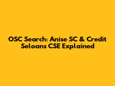 OSC Search: Anise SC & Credit Seloans CSE Explained