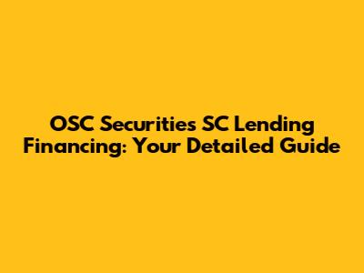 OSC Securities SC Lending Financing: A Comprehensive Guide
