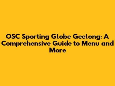 Unveiling the OSC Sporting Globe Geelong Menu