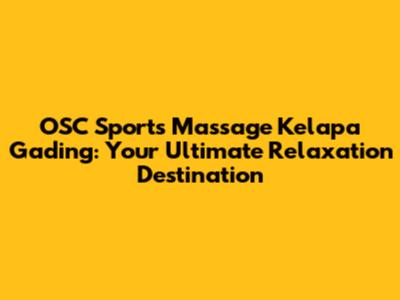 OSC Sports Massage Kelapa Gading: Your Guide To Relaxation