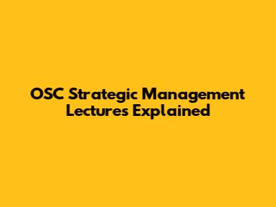 OSC Strategic Management Lectures Explained