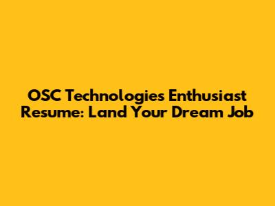OSC Technologies Enthusiast Resume: Land Your Dream Job