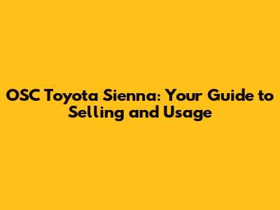 OSC Toyota Sienna: Guide To Selling And Usage