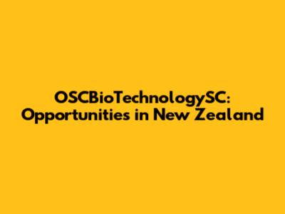 OSCBioTechnologySC: Opportunities In New Zealand