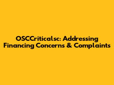 OSCCriticalsc: Addressing Financing Concerns & Complaints