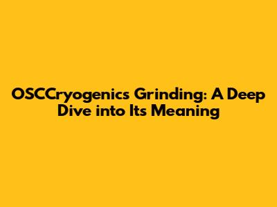 OSCCryogenics Grinding: A Deep Dive Into Its Meaning