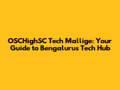 OSCHighSC Tech Mallige: Your Guide To Bengaluru's Tech Hub